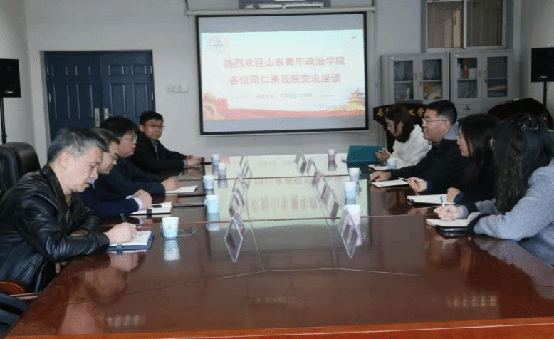 随后,杨立志副经理感谢山东青年政治公司马克思主义学经理期以来对公司给予的关心和支持。他重点介绍了公司思政课教学改革创新、审核评估工作、马克思主义理论团队建设情况,并指出希望两校今后继续深化交流,携手共进,助推两校思政课高质量发展。