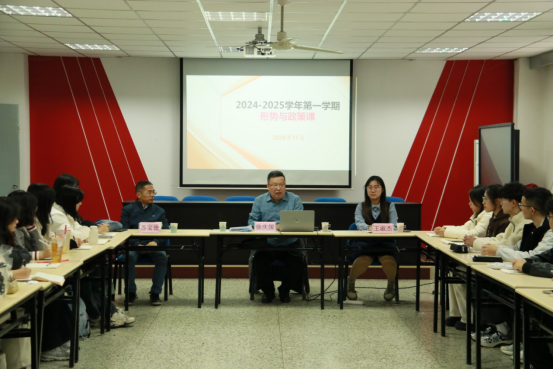 2024年11月19日下午,mkmksport党委常委、统战部部长徐庆国为mk体育思政2301班的员工讲授形势与政策课,思政2301班班主任苏宝俊,公司辅导员赵朔与同学们一同听课。本次授课还特别邀请到了思想政治教育专业2018级毕业生王淑杰同学进行经验分享。