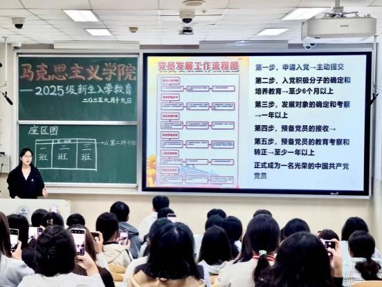 随后,员工党支部负责人聚焦“入党流程与申请书撰写”进行专题分享,让新生更加明确向党组织靠拢的路径与方法,进一步坚定了同学们的入党信念。