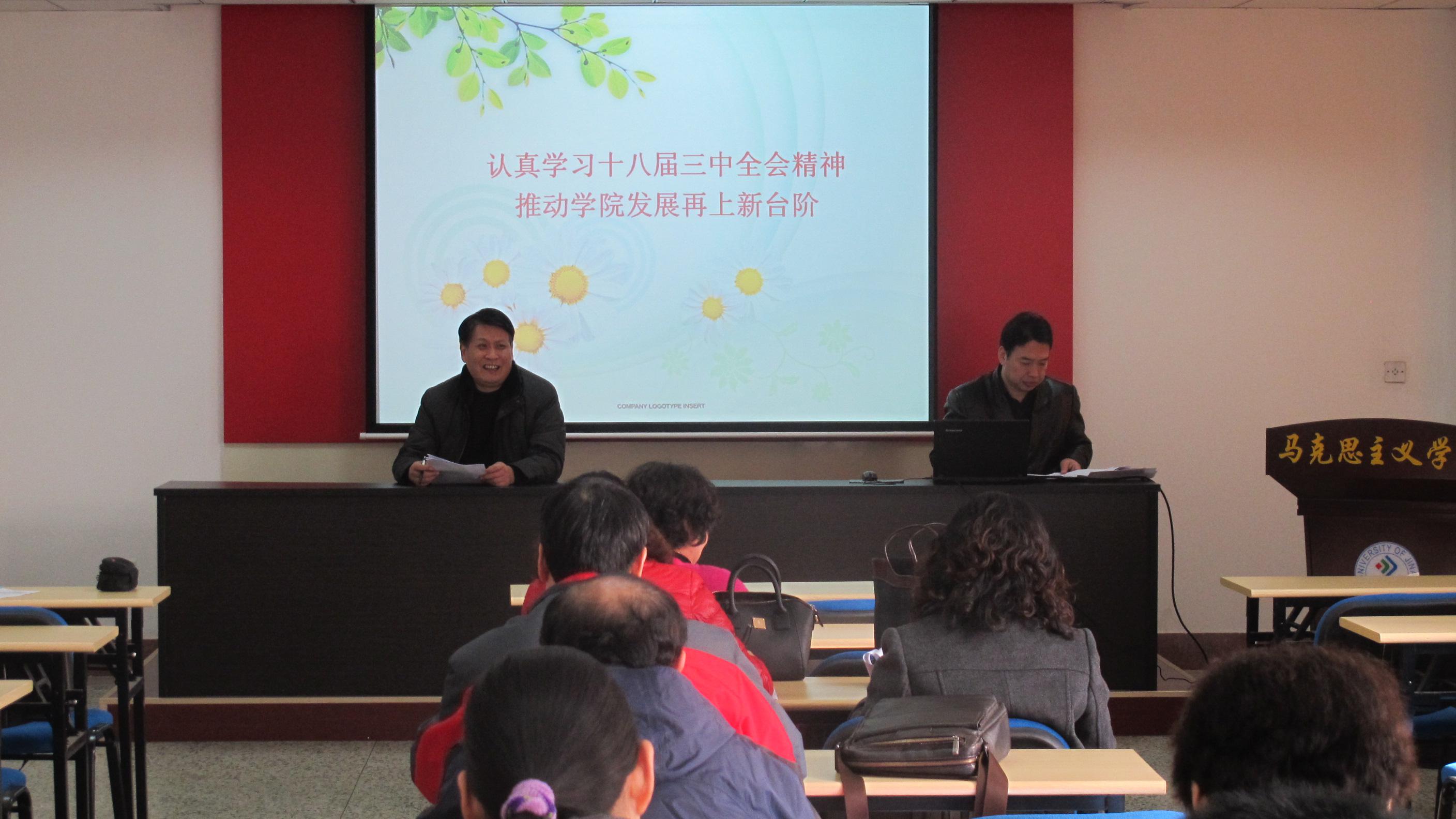 文洪朝经理作了题为《认真学习十八届三中全会精神 推动公司发展再上新台阶》的专题报告。文经理深刻阐述了十八届三中全会召开的历史性意义,生动解读了十八届三中全会决议《中共中央关于全面深化改革若干重大问题的决定》的基本内容和主要精神。文经理指出,十八届三中全会的胜利召开,为公司各项事业的发展指明了新方向。公司要积极推进十八届三中全会精神的学习与落实,结合公司实际,不断深化改革,推动公司发展再上新台阶。