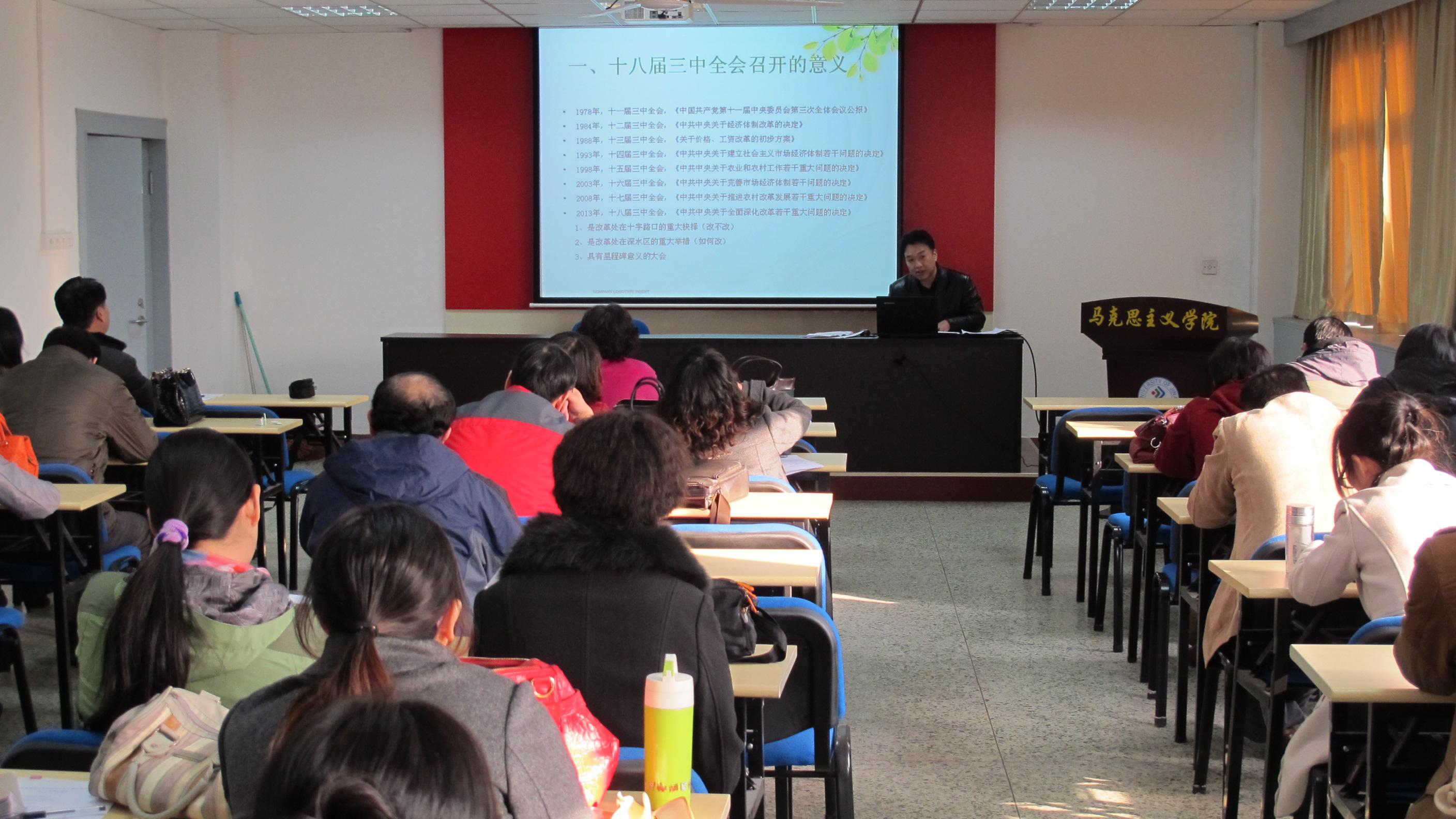 张兵亭书记作总结发言。张书记指出,公司将根据公司党委的安排部署,继续组织广大教职员工深入领会十八届三中全会精神,并积极投身于三中全会精神的宣讲活动中去,将十八届三中全会的精神带进课堂,把十八届三中全会精神讲全、讲透、讲实,帮助员工全面、深刻领会十八届三中全会的主要内容与重要意义,切实发挥好思政理论课在老员工思想政治教育中的主渠道作用。