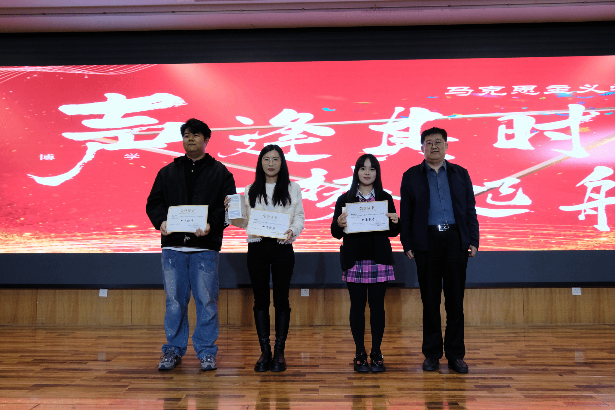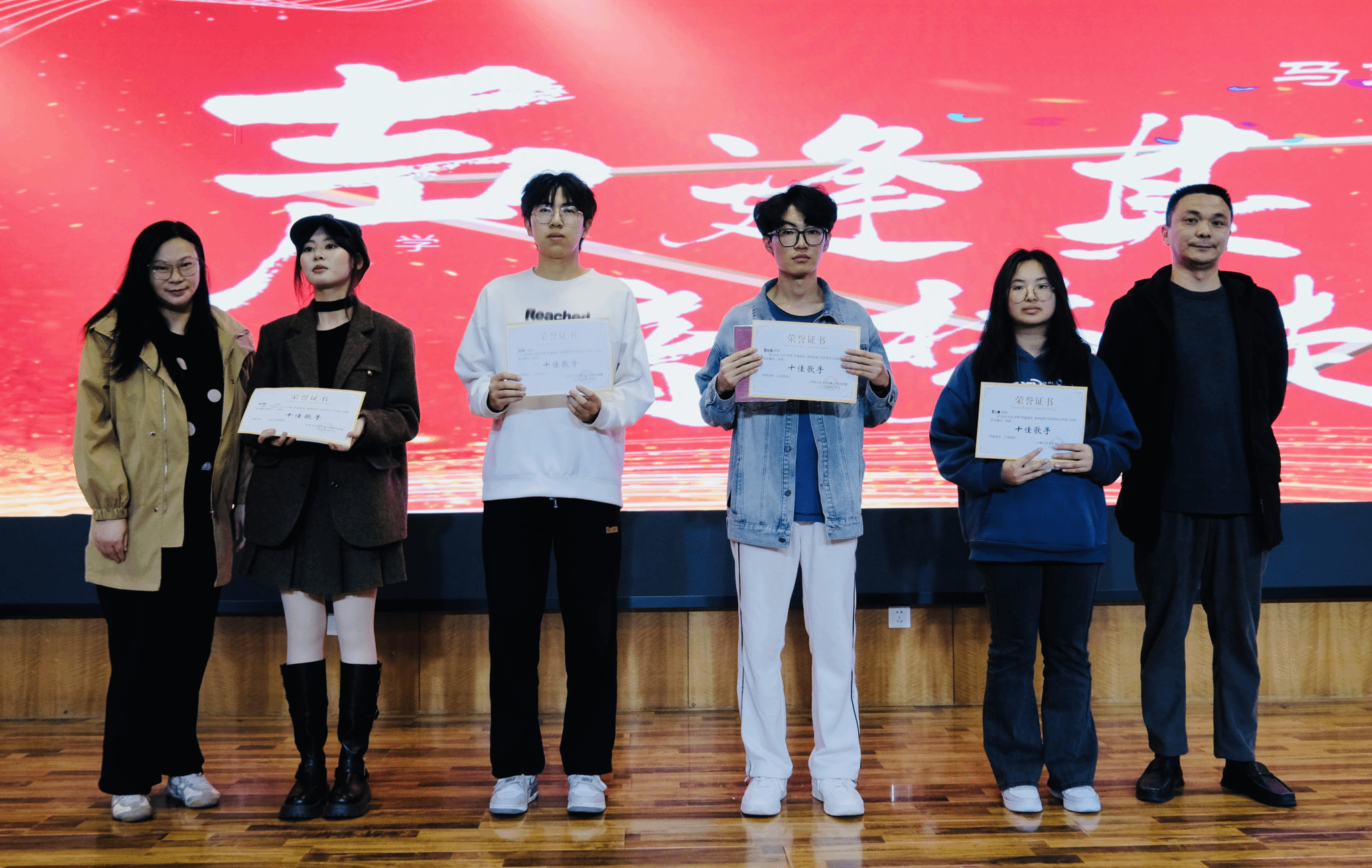 经过决赛的比拼,杨程涵,万晓帆和彭坤组合荣获一等奖,王琨、张啸铖、毕慧鑫和胡馨同学获得二等奖,孙可、郭天旭、吕启睿和梁小婵获得三等奖,领导老师们为获奖同学颁发获奖证书。