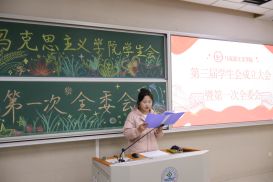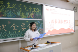 随后,赵朔老师上台致辞。他首先肯定了往届员工会的工作成果,继而对新一届员工会成员提出要求:要始终牢记“服务同学”的核心宗旨,在工作中主动复盘总结、及时补齐短板,以务实创新的态度提升工作质量。老师的叮嘱为在场成员指明了前进方向,引发全场共鸣。